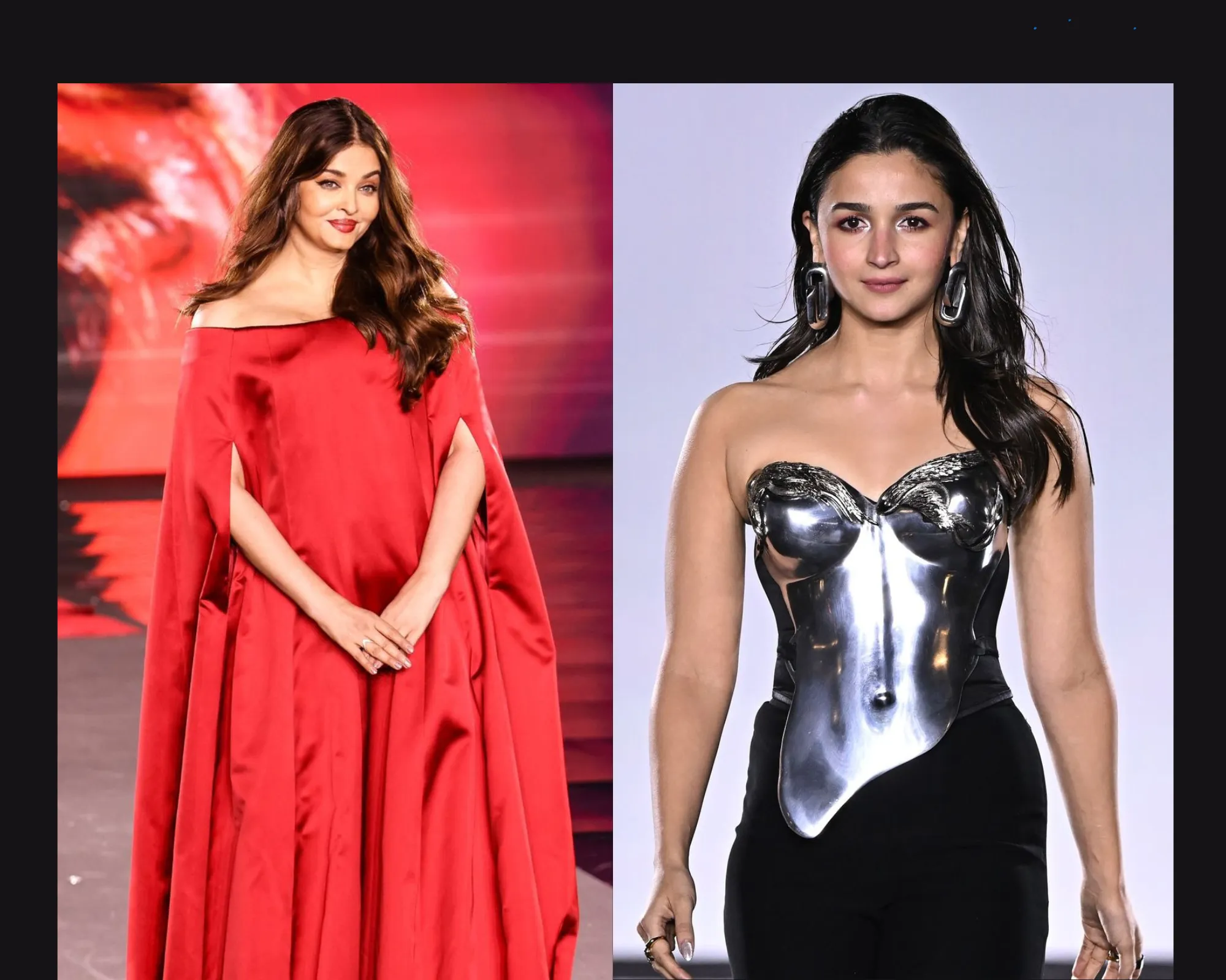 Aishwarya Rai Bachchan glows in satin red while Alia Bhatt debuts in metallic silver walking the ramp for L’Oréal Paris at Paris Fashion Week.