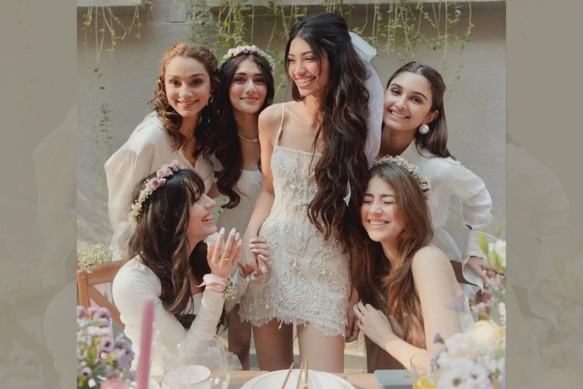 When the weekend leans into sand, sun, and open skies, boho silhouettes come alive. A crochet maxi for the bride keeps things bridal but relaxed; the squad can mix bralettes with wrap skirts, flowy kaftans, or airy co-ords. A wrap skirt layered over a bikini works for a beach day, while a silk skirt with a cropped top is perfect for sunset cocktails. Boho captures effortless elegance without trying too hard. Alanna Panday’s bachelorette party is a fine example of how to do boho chic easy and effortless.