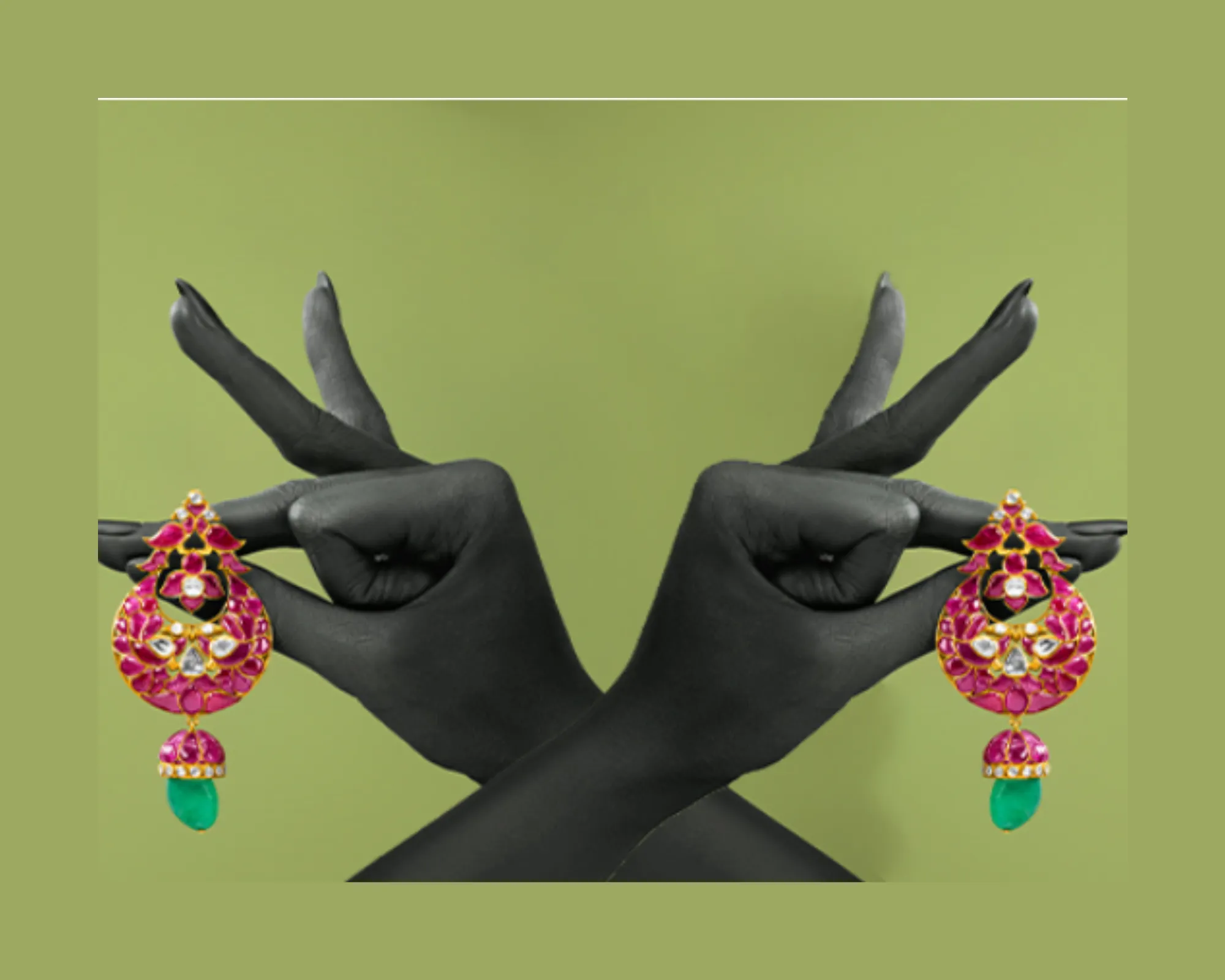 The design nouveau of earrings, these opulent tri-layered cascading earrings with layers of diamonds and rubies are the ideal shimmering additions to any bride’s jewellery chest.