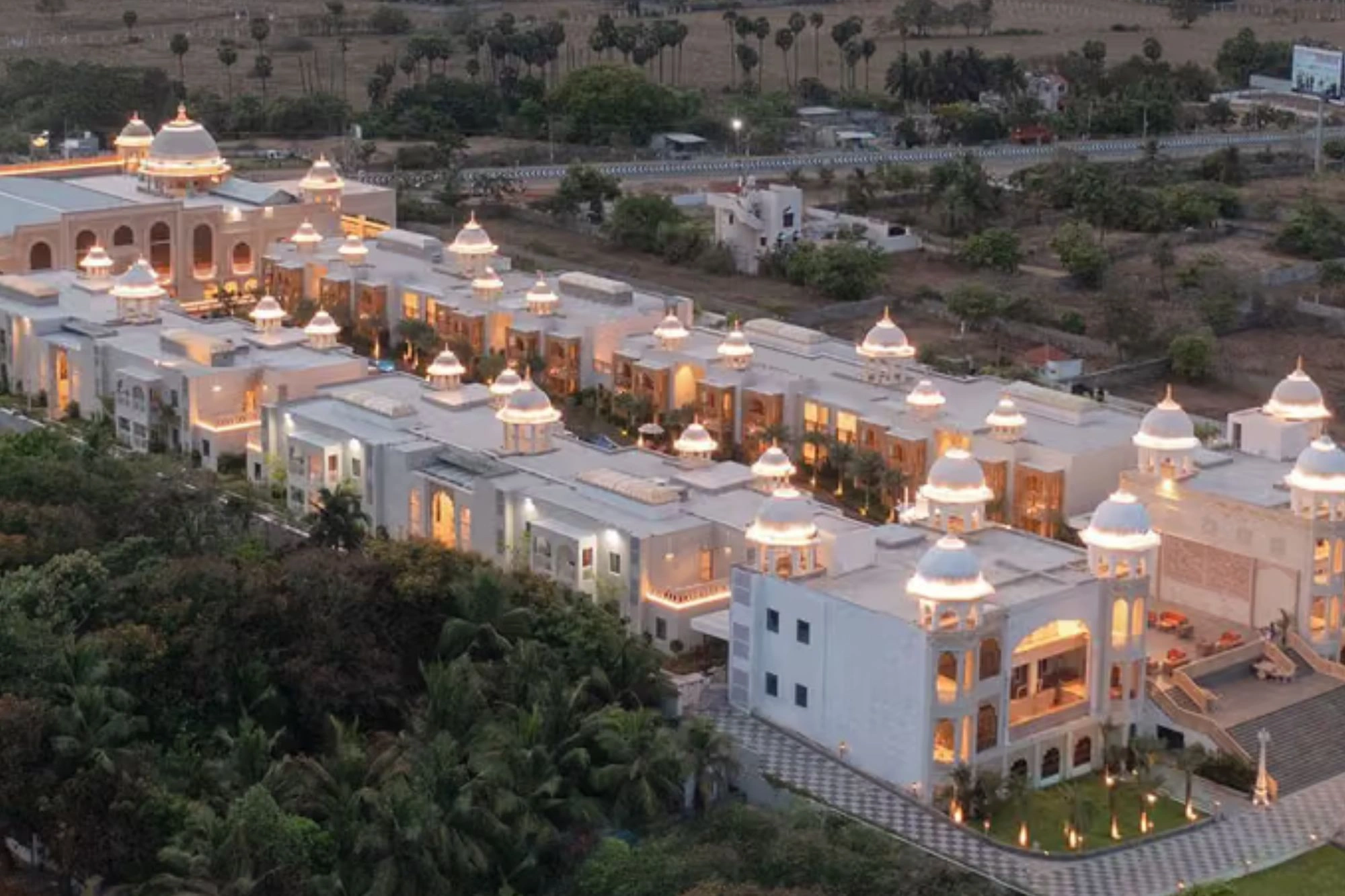Indoors, the Royal Darbaar Ballroom brings in chandeliers and regal detailing, suited for lavish soirees and formal receptions. The Diwan Halls, on the other hand, offer a more refined space for smaller functions or pre-wedding rituals. From curated Mehendi courtyards to poolside Haldi celebrations and beachside receptions, the property moves fluidly with the mood of each event.