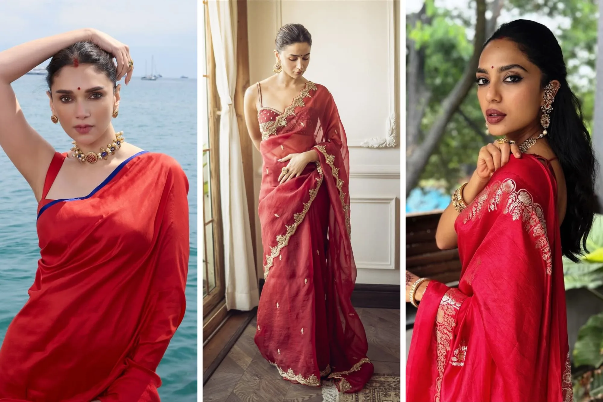 And when it comes to red sarees, who better to take cues from than our favourite celebrities? They’ve mastered the art of blending desi elegance with that modern, effortless flair. So, grab your chai, settle in and let Wedding Affair find that one red saree that’ll have your partner forgetting the moon even exists.