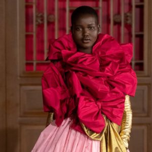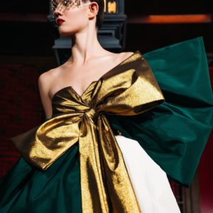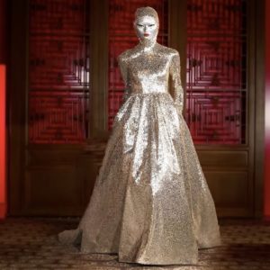 Huge bows, shimmery makeup and shining sequins defined the dominant looks of the iconic show. A perfect amalgamation of Italian finesse in tailoring and design, the outfits were as over the top as they could get. The haute couture show highlighted ‘daydream’ as an expression of presence, enlivened by beautiful feelings. Bows of gold lamé, cherry red and rose came together to recreate grandiose of a different kind. The pureness of volumes was amplified by a richness of materials and a fantastic encounter between cultures, an exchange of dreams was witnessed by those present. Opulent crystal headpieces complemented dresses embroidered with velvet, satin, sequins and rhinestones.