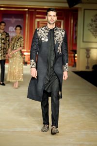 The collection was an amalgamation of European details, Victorian inspirations and Baroque decorations with rich Indian heritage. The colour palette of the garments ranges from champagne golds, ruby wine, verdant green, coral blue and the staple black. This bridal line is an ode to the forgotten lifestyle lived of elegance and royalty for the the modern-day woman.