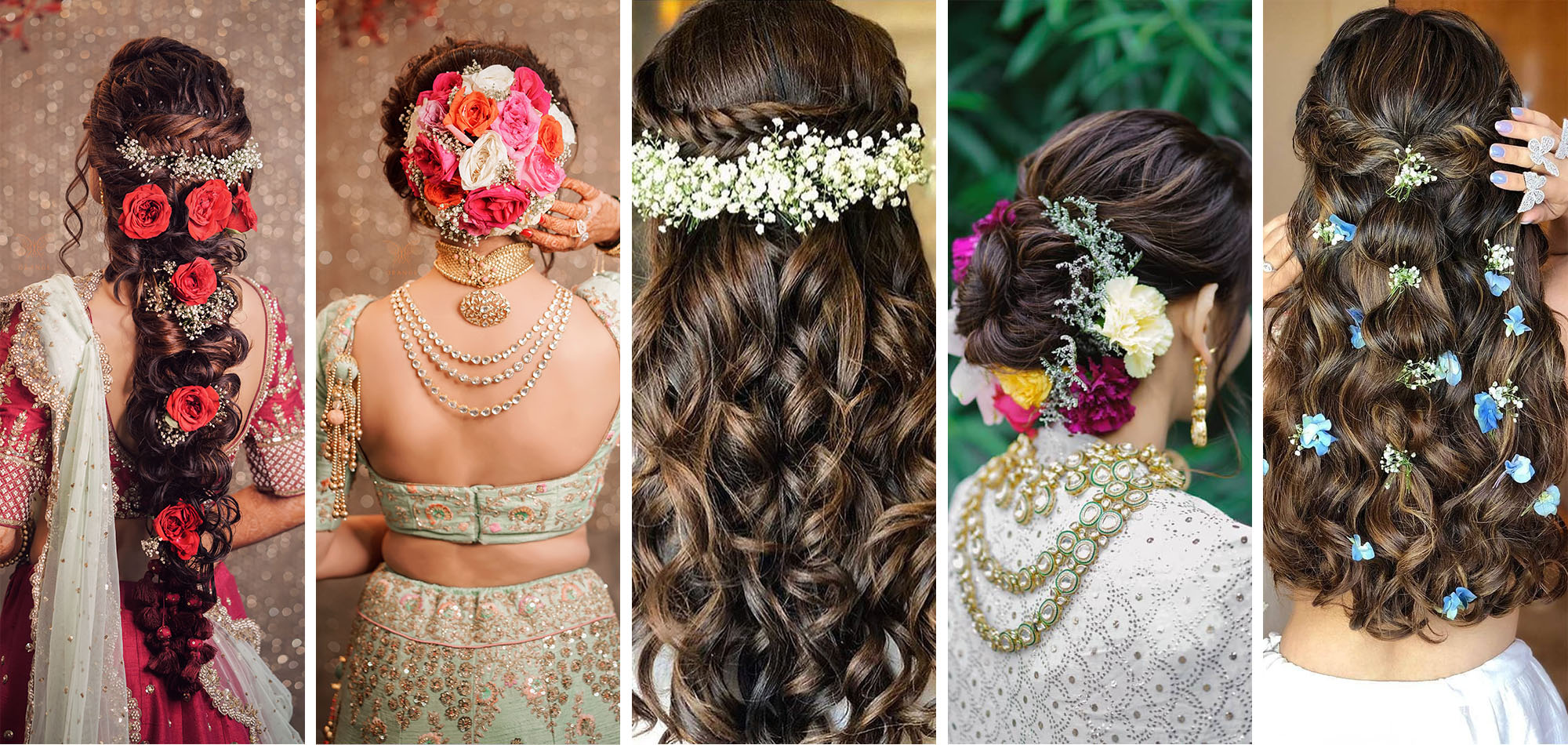 It is one of the trendiest hairstyles doing the rounds this wedding season and looks extremely chic and sophisticated. Undoubtedly, this hairdo is going to enhance the beauty of the entire outfit by ten folds. From the basic white baby breath’s flowers to playing with coloured florets like pink, blue and purple, this hairdo is sure to create a style statement. It is perfect for engagement, sangeet or mehendi functions as it is a light hairstyle that gives the bride a joyous and youthful look. The hairdo will make for a divine look for the bride on her special day.
