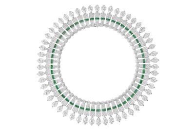 Created in 1971 by Van Cleef & Arpels, the necklace was part of Begum Salim Aga Khan’s jewellery collection. With more than 745 engraved diamonds weighing 55 carats in total, along with 44 emeralds of 470-carats. The necklace can transform into a beautiful choker, two bracelets, and a clip. This unique piece is a testament to the importance and legacy of transformable jewellery throughout history.