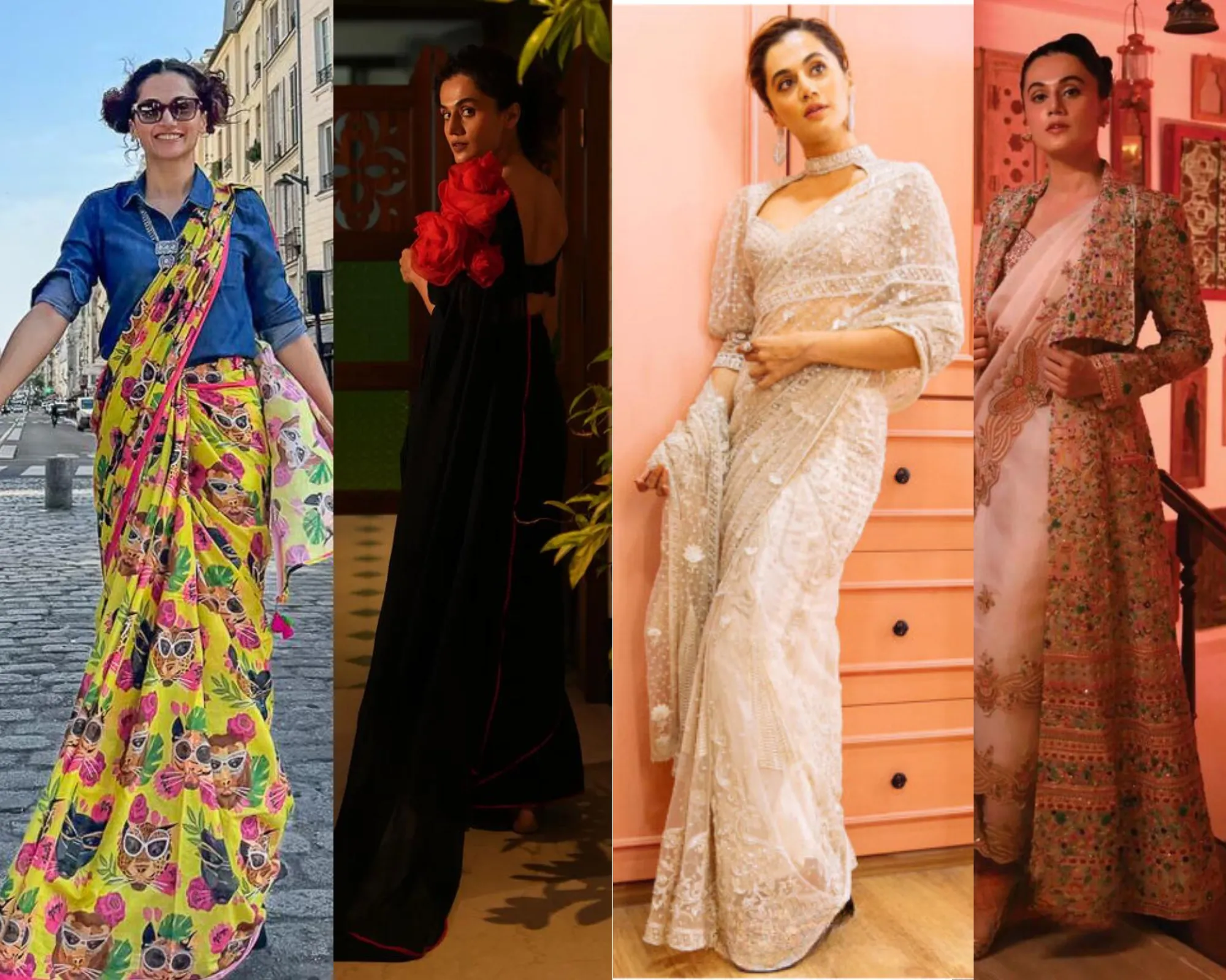 Taapsee Pannu is known for her playful and quirky self and therefore she has worn a lot of sarees that have been an embodiment of her true self.
