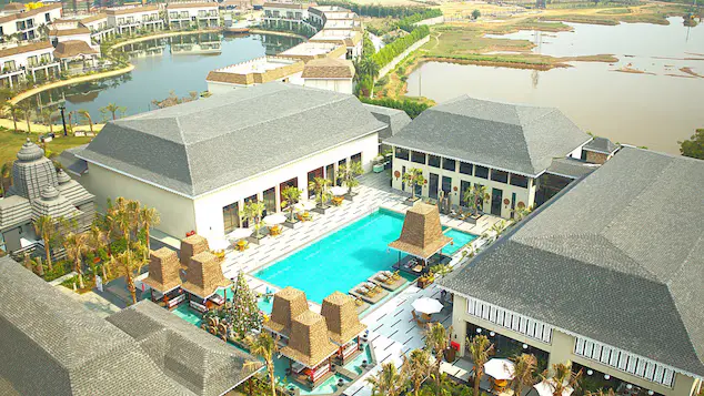 Maira Resort and Convention Centre is a world within world in itself with a myriad of curated experiences like swimming and wave pool, restaurants and bars, spa and salon, health club, night club, souvenir shops, business centre, bakery, amphitheatre, adventure zone, boutique, banqueting and convention, lawns, a temple and a lake. The resort is perfect for a destination wedding that will take you on a cruise to Bali.