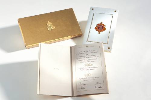 With Lord Ganesha’s idol marking the beginning of the auspicious occasion that your guests are going to witness, the ivory invite makes a perfect Wedding Invite. Personalized invitation cards can be sent along with this package to convey the message.